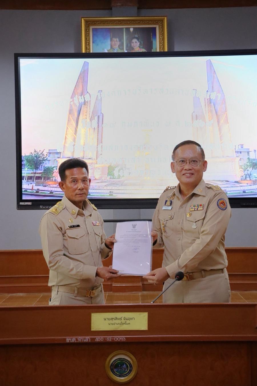 เมื่อวันนี้ (19 กุมภาพันธ์ 2569) เวลา 16.00 น. ณ ห้องประชุมสภาองค์การบริหารส่วนตำบลท่าเสาตำบลท่าเสา อำเภอไทรโยค จังหวัดกาญจนบุรี นายสุรสิทธิ์ จันอุทา นายอำเภอไทรโยค เป็นประธานเปิดการประชุมสภาองค์การบริหารส่วนตำบลท่าเสา ครั้งแรก ประจำปี 2569 พร้อมประกอบพิธีประดับเครื่องหมายอินทรธนู และมอบนโยบายการปฏิบัติราชการแก่สมาชิกสภาและคณะผู้บริหาร องค์การบริหารส่วนตำบลท่าเสา