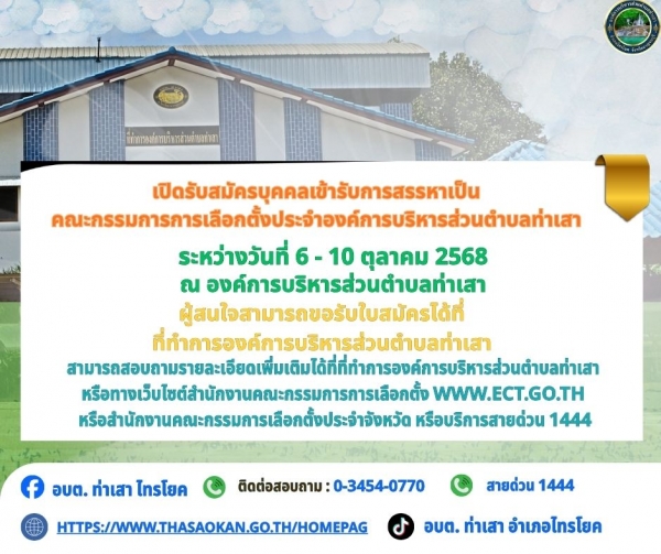 เปิดรับสมัครบุคคลเข้ารับการสรรหาเป็นคณะกรรมการการเลือกตั้งประจำองค์การบริหารส่วนตำบลท่าเสา