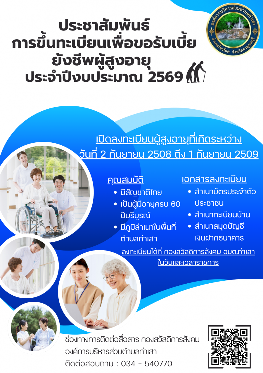 ประชาสัมพันธ์ การขึ้นทะเบียนเพื่อขอรับเบี้ย ยังชีพผู้สูงอายุ ประจำปีงบประมาณ 2569