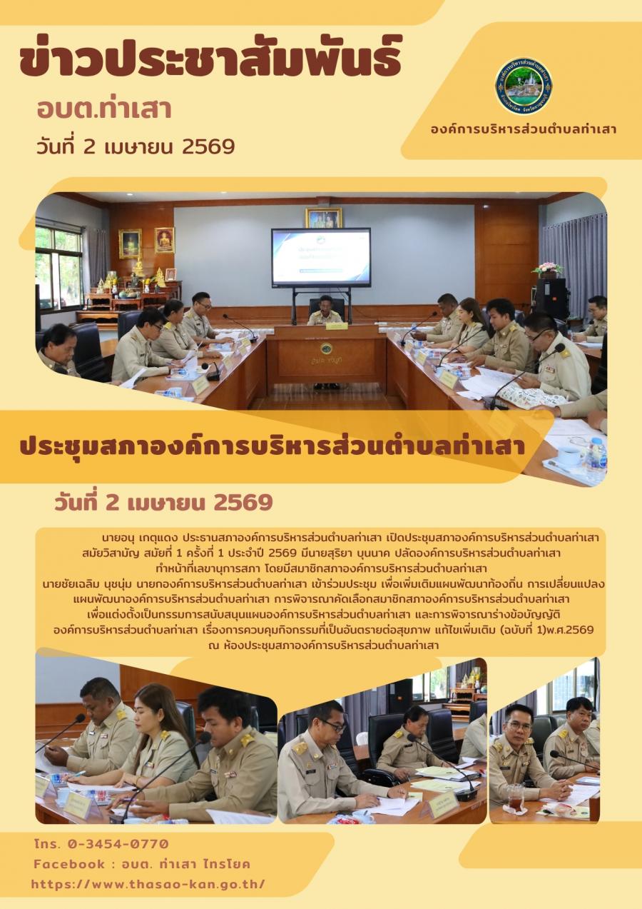 ประชุมสภาองค์การบริหารส่วนตำบลท่าเสา สมัยสามัญ สมัยที่ 1 ครั้งที่ 1 ประจำปี 2569