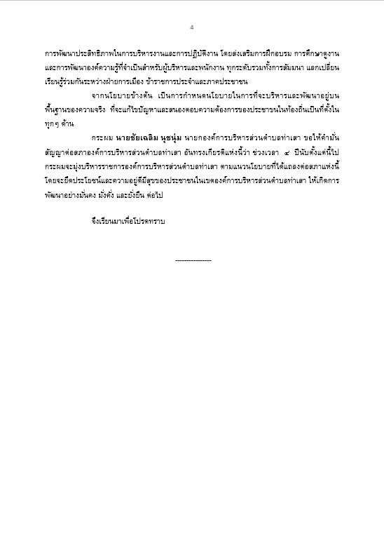 คำแถลงนโยบายสภาองค์การบริหารส่วนตำบลท่าเสา